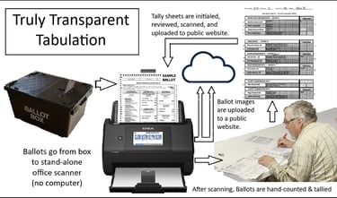 The Hand Count page proposes a transparent system of ballot processing that requires securely photocopying ballots immediately after the polls close, and making all election documents, and ballot images publicly available immediately.