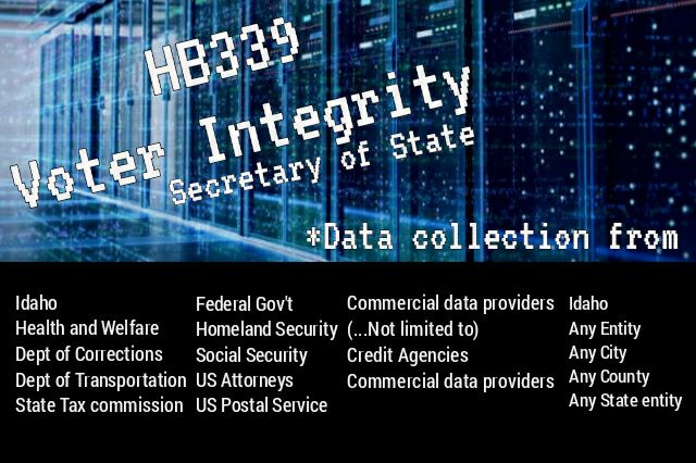 Shows how HB 339 provides for mass data collection on all Idaho voters, but allows loop holes for fraud and does not clean up voter rolls.